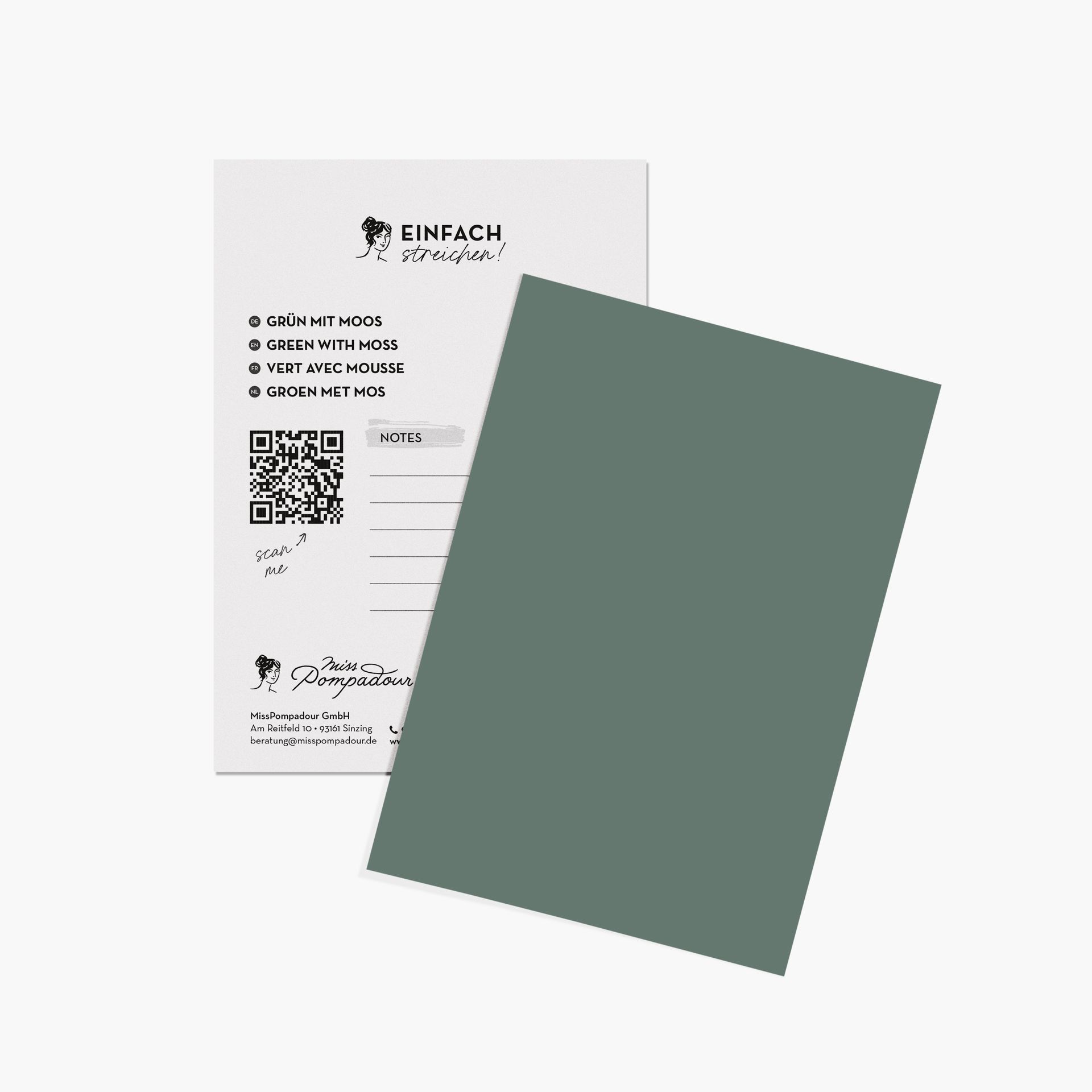 If you are planning to design your tiles with tile paint in a new colour, it makes sense to order a MissPompadour Paints colour card set. The postcard-sized colour cards can be removed individually. This gives you the opportunity to place all the green colours next to each other and compare them in any light.