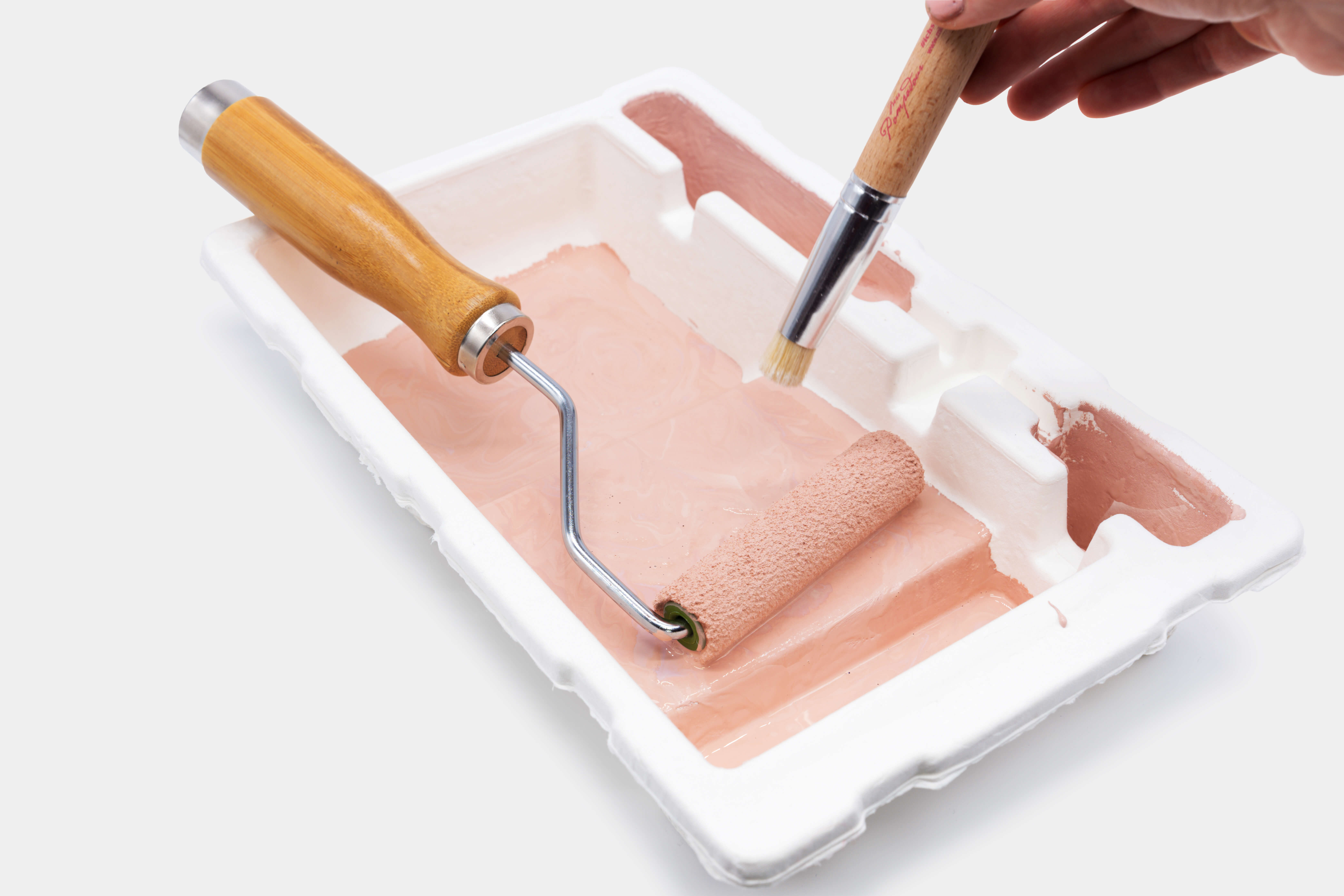 The innovative MissPompadour Paint tray! not only holds paint, but also rollers and brushes at the same time. It is not made of plastic, but is compostable. It does not bend and is still light as a feather. New: The surface is now even more robust thanks to a double coating.